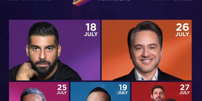 وفي 19 تموز، يطل النجم جوزيف عطية، ليشعل المسرح بحضوره الناري وأغانيه الشبابية التي تلقى رواجًا واسعًا في لبنان والعالم العربيأما في 25 تموز، فيلتقي الجمهور الموسيقى ألف ابي سعد بحفل استثنائي