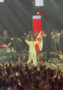 محمد رمضان بدوره أشعل المكان منذ لحظة دخوله، حيث استُقبل برقص فلكلوري لبناني ورُفع على الأكتاف وسط هتاف الجماهير. قدّم عرضًا استعراضيًا مفعمًا بالحيوية، غنّى أشهر أعماله مثل “نمبر وان”، “الملك”، و”السلطان”، وقفز ورقص بحماسه المعتاد، ليحوّل المسرح إلى بركان من الطاقة. رفع العلم اللبناني عاليًا وصرّح: “قلبي اسمه لبنان”، فألهب مشاعر الجمهور أكثر.